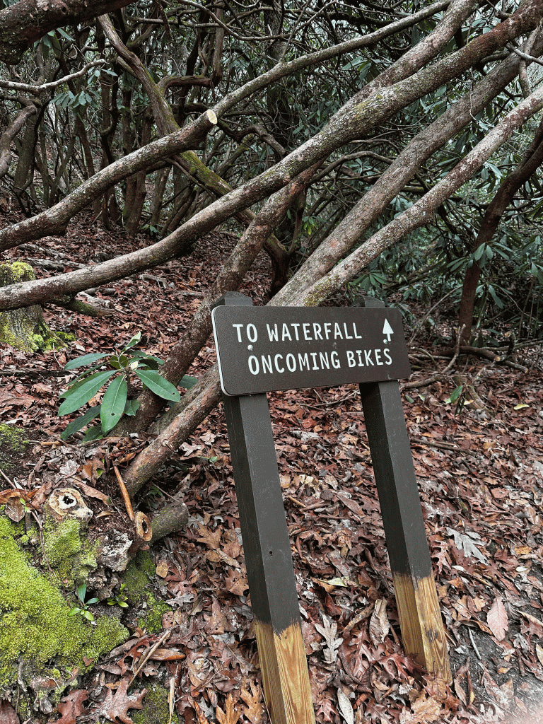 This waterfall needs a substantial amount of rain to look its best. There is a wonderful trail cut to it from the Palmetto Trail, off of the Stumphouse Mountain Bike Park. There is a sign that notes “waterfall,” but there is no name, and I can’t find any information on this falls at all. If you have any information on if this waterfall has a name, or who is responsible for cutting the wonderful trail to it, please reach out to me! For now, I’m just calling this one “Bike Trail Falls” just to give a name.