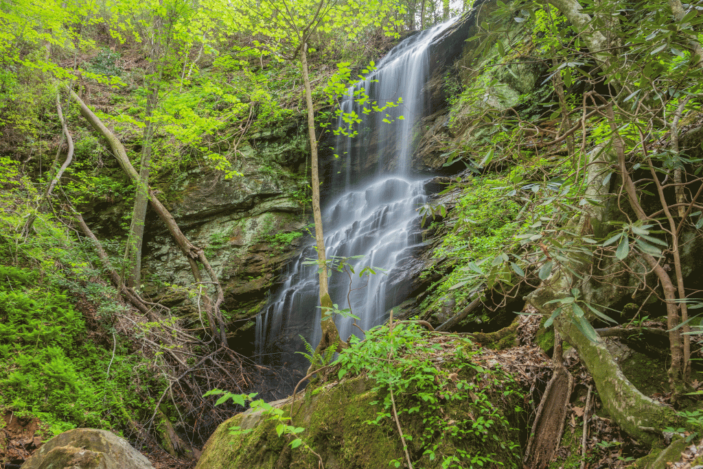 Hike: Begin the hike by walking the length of the old forest road. When the road ends, continue to follow the slope of the ridgeline, avoiding the steep ravines on either side. To your right, you will hear the Waterfall on tributary to Boatwright Creek, but this is much easier accessed from the directions in its listing. Continue along the ridgeline through relatively open forest to around GPS 34.69234, -83.30476. Here, you will want to make a left, heading towards the waterfall. The final descent to the waterfall is incredibly steep, and bringing a rope is suggested to make it easier, as the terrain is quite soft and slippery. Map reading skills and experience in off-trail hiking is required. Mileage will vary depending upon your route, but will average approximately two miles round trip.