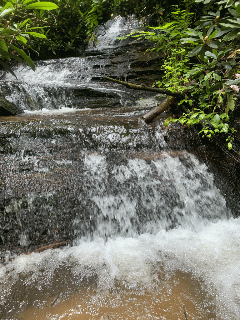 At 34.84202, -83.25214, the waterfall is multi-level, but because of the overgrowth, you can only see it in sections: