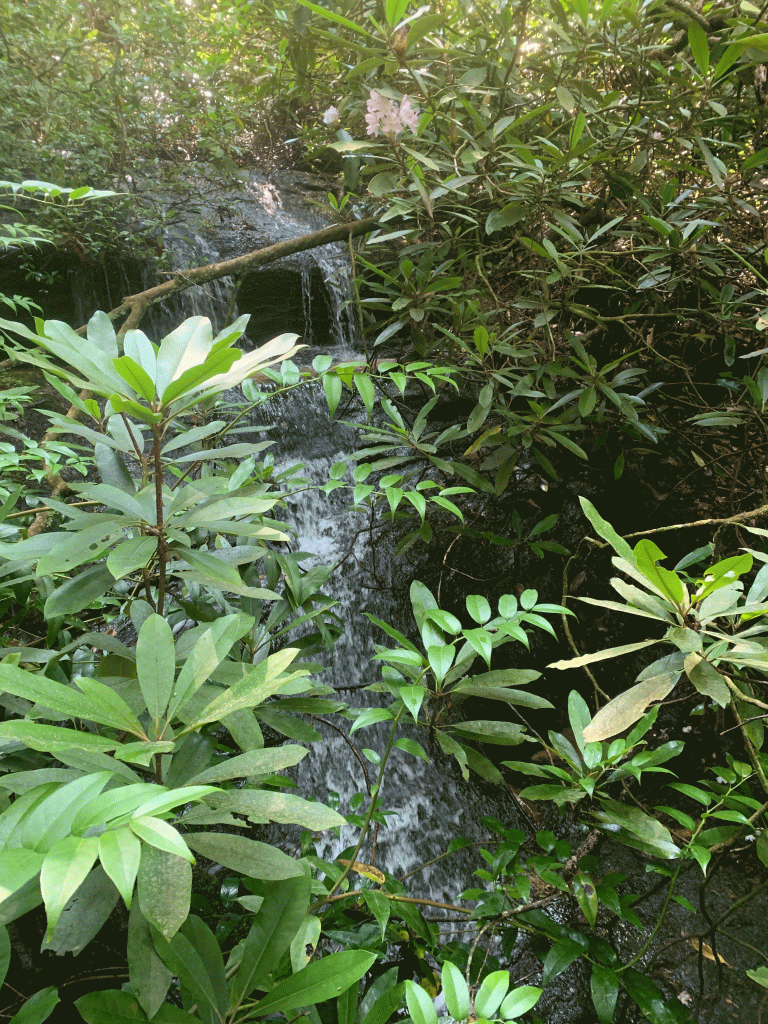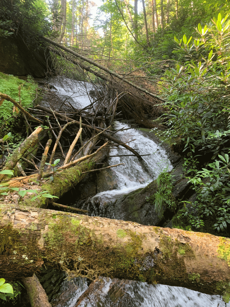 There are two tributaries just off of Fall Creek Road, that together flow into the Chattooga. These are typically lower flow tributaries, and the waterfalls are all either overgrown or covered in downfall, so I’m not giving any of them full listings, but including them here for documentation purposes. While there is a trail off the road that you can follow for a bit, bushwhacking is required to reach these falls, and map reading and off-trail hiking experience is necessary. Park at the road split of Fall Creek Road and Turpin Branch Road, GPS 34.83617, -83.25381.