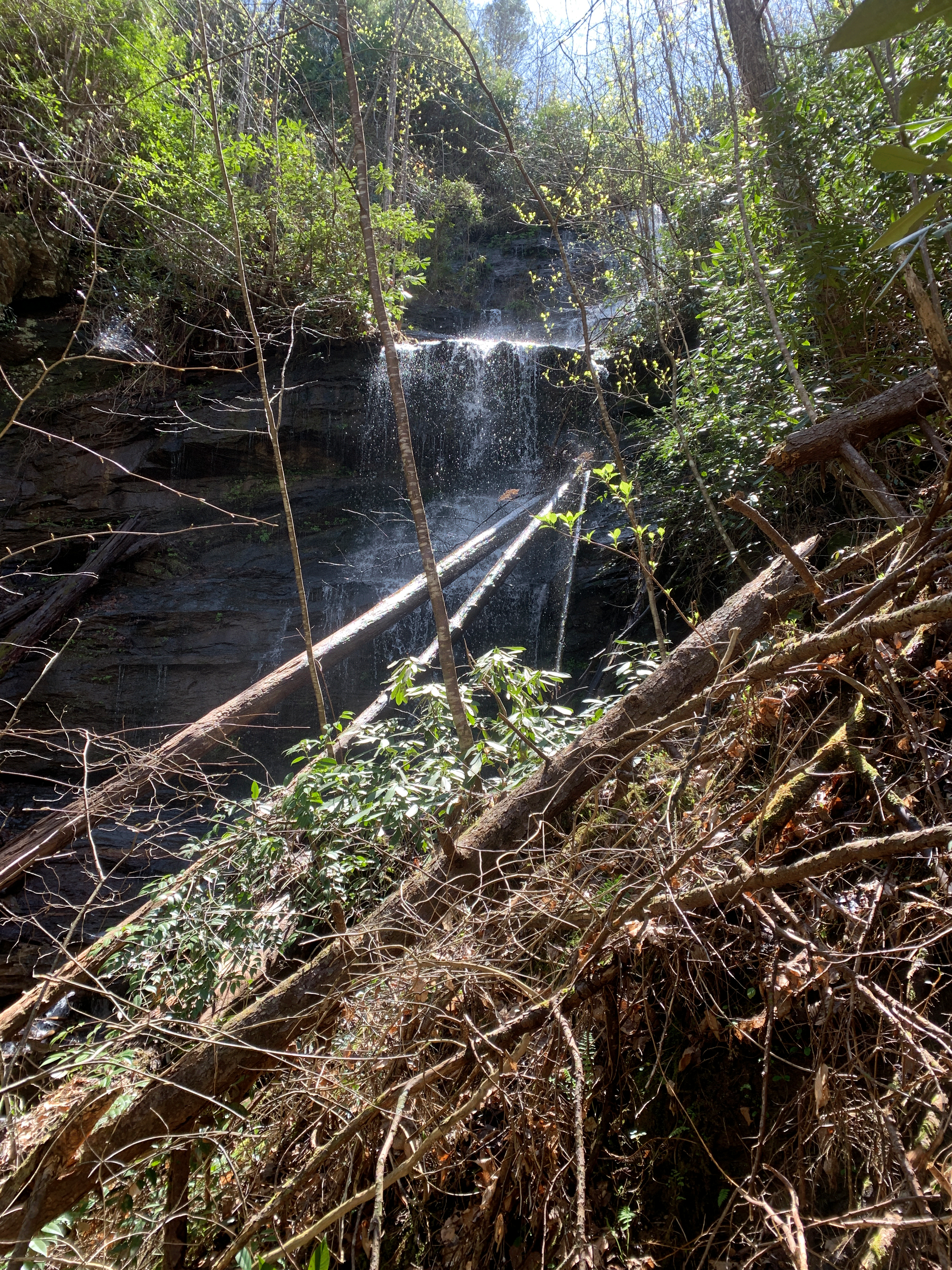 And, the very top falls. This drop is easily 80 feet high, probably more. I think Christopher says is 100-120 feet. It has some large trees down at the base, so the ideal pictures come from along the rock wall on river right, which prevents you from seeing the very top of the falls. I’ve included a cell shot from river left, looking up, where you can catch a glimpse of the uppermost drop. On this day, I did not climb up to get a shot of that drop, but it is possible to do so.