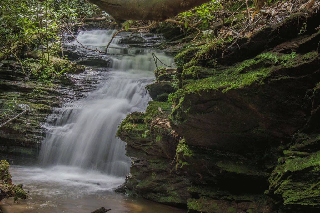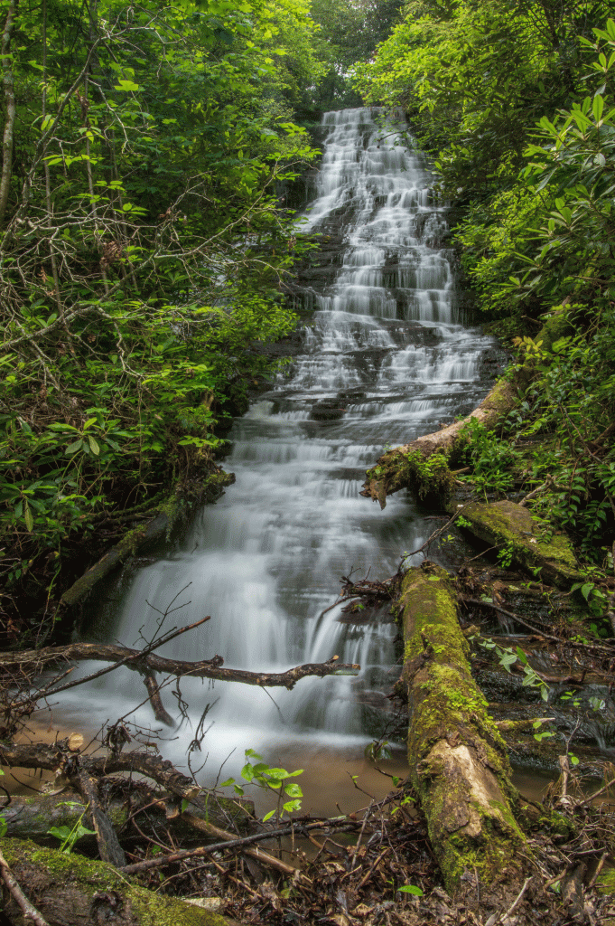 This uppermost waterfall on Opossum Creek sits nearly side-by-side with Sid’s Falls. Because of its close proximity to Sid’s, the waterfall community opted to name this waterfall after Maxie Duke, as she and Sid Ballenger were Oconee County’s waterfall pioneers.