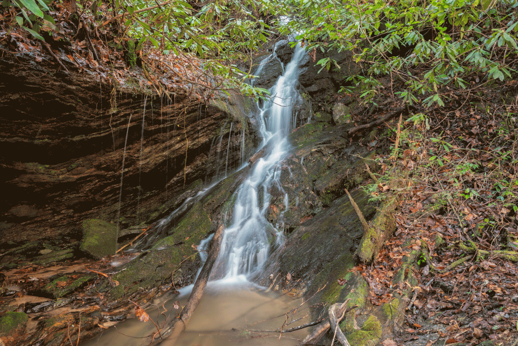 Off-trail hiking and map reading experience are required for this hike. While it is mostly open woods, there are some thick spots of rhododendron to work through, and it is very steep near both Tilly Branch and the tributary where this waterfall sits. Extreme caution should be used.
